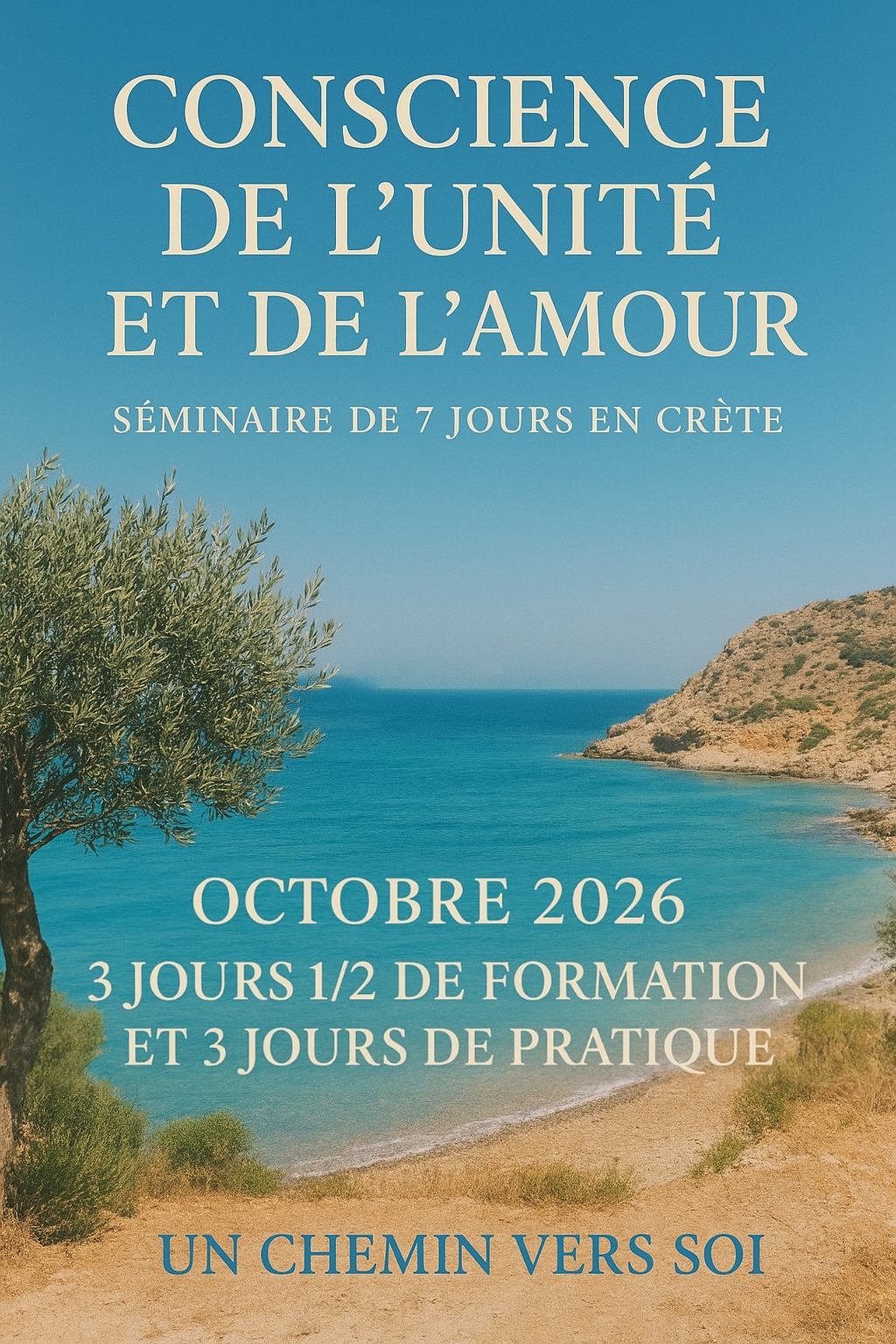 • 3 jours 1/2 de formation sur notre lien à l’Univers/la Source, qui nous sommes, la capacité à recevoir les signes, le canal intuitif, ce qui bloque, la Foi, l’Emerveillement, l’Amour de Soi, le Karma, la réincarnation, l’Amour des autres, l'Ego Spirituel, le Dharma, etc…